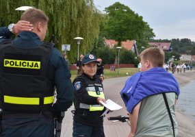 Prevencinė priemonė įgyvendinta Nidos pamaryje – policijos pareigūnai stebėjo, kaip dviratininkai ir elektrinių mikrojudumo priemonių vairuotojai laikosi Kelių eismo taisyklių. Draugiškai, su šypsenomis, mažiesiems priminta apie saugumą, o vairuotojams įteiktos atmintinės su svarbiausia informacija apie saugų elgesį kelyje.
