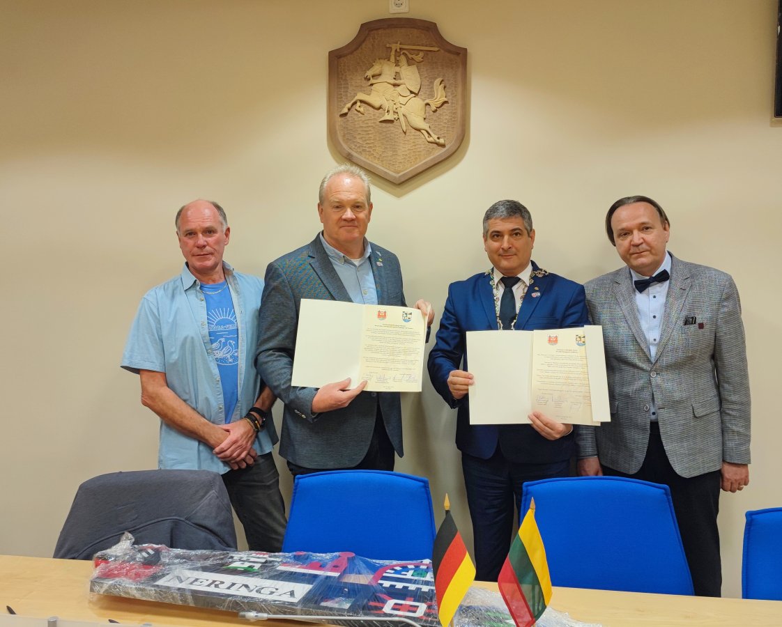Neringos savivaldybėje vykusio susitikimo metu iškilmingai pasirašytas Neringos ir Fėmarno miesto 25 metų draugystės liudijimas, patvirtinantis gyvą, augančią ir stiprėjančią partnerystę. Šiame dokumente įtvirtintas abiejų pusių siekis ir toliau stiprinti bendradarbiavimą, atliepiant šiandienos iššūkius ir rytdienos galimybes. Tęsiant tradiciją, prasidėjusią prieš ketvirtį amžiaus, dokumentą pasirašė Fėmarno miesto pirmasis tarybos narys Dirkas Frohbergas, draugystės komiteto pirmininkas Giunteris Šrioderis bei Neringos savivaldybės meras Darius Jasaitis ir vicemeras Narūnas Lendraitis.