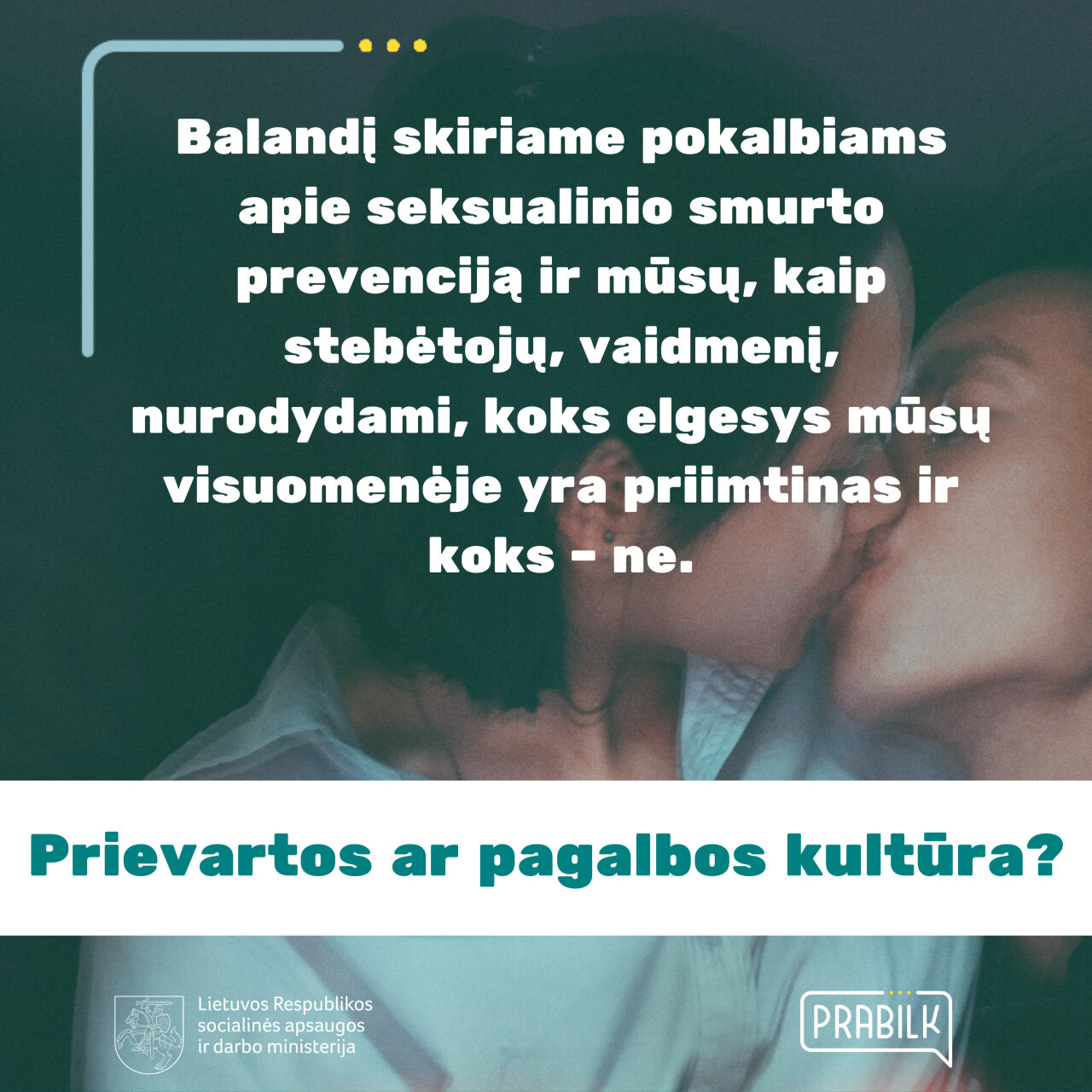 | Pažvelgę į Lietuvos smurto artimoje aplinkoje statistiką, sužinosime, kad absoliuti dauguma nukentėjusių asmenų – moterys (79,8 proc.), o dauguma įtariamųjų (kaltinamųjų) dėl smurto yra vyrai (jie sudaro 88 proc. visų agresorių). Taigi tokią situaciją galima laikyti klasikiniu smurto dėl lyties pavyzdžiu, atitinkančiu ir pasaulyje vyraujančias tendencijas. | 8 iš 10 dėl smurto artimoje aplinkoje užregistruotų nusikaltimų aukų – moterys. |