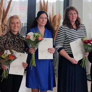 Neringos gimnazijos pradinių klasių mokytojai metodininkei Ramunei Kubiliūtei ir dailės mokytojai metodininkei, technologijų vyr. mokytojai Jolitai Kundrotaitei bei Neringos meno mokyklos kanklių mokytojai metodininkei Ievai Pumputytei-Macevičei.